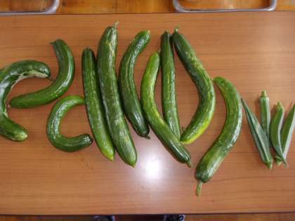 きゅうり担当の子供たちは、「1本はダンゴムシのえさ、あとはみんなで分ける!」ということで、みんなで1本ずつ持ち帰りました。子供たちは、「どうやって食べようかなあ」と話していました。