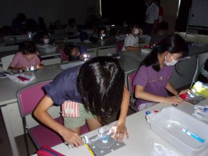 6月28日(火)5・6年生 サイエンスカー訪問「月の満ち欠け」 公開日 2022/06/29 更新日 2022/06/29 6年生 5時間目に、サイエンスカー訪問を行い、月の満ち欠けについて学習しました。月と太陽・地球の位置関係から月の見え方を調べるために、模型を作り、LEDライトを当てて月がどのように光って見えるのかを確かめました。いつも何気なく見ている月を、じっくりと見たくなりますね。