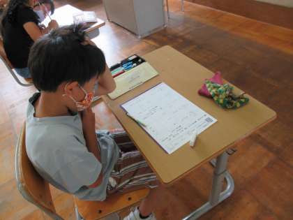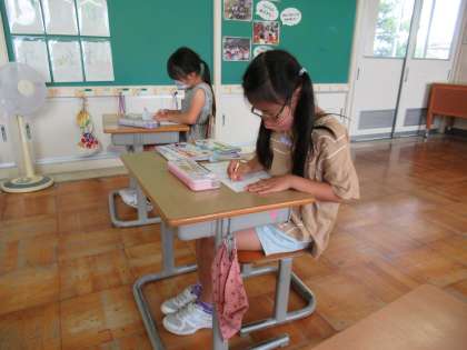 漢字のプリントをしています。「昨日の宿題で出てきた漢字ですよ、やってきた人ならわかるはずです」と担任の先生の声が。「「姉」ってどんな漢字だっけ・・・」、「「いとへん」ってむずかしいなあ」と子どもたちの声が聞こえてきます。1年生の頃より、覚える漢字が増えた2年生、がんばれ!