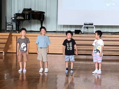 1年生は「じゅげむ」の暗唱、「虹」を1人で歌いました。