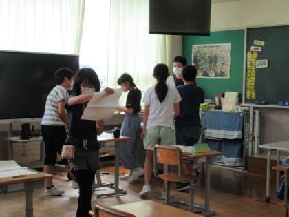 7月19日(火)6年生 わくわく?テスト返却 公開日 2022/07/19 更新日 2022/07/19 6年生 以前行った社会科のテストの復習をしていました。みんなで復習をしたあとは、お待ちかねのテスト返し。難しかった、前よりもできなかったかも、とつぶやく6年生でしたが、どこを間違えたのか、どうして間違えたのか、自分の答案用紙と問題用紙とを見返して、自分が解けなかった問題にしっかり向き合っていました。