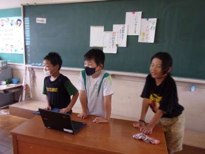 一学期の終業式を前に、今日は子供たちが「一学期がんばったね集会」を開きました。運動係による企画では、ドッジボール、しっぽ取り、サッカーで思い切り体を動かし、熱く勝負しました。新聞係による「音楽当てクイズ」は、難題に苦戦しながらも楽しみました。遊び係による「かくれんぼ」では、真剣に隠れて最後まで見つからなかった子供に拍手を送りました。無邪気に楽しむ全員のハッピースマイルが最高でした。