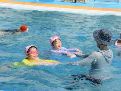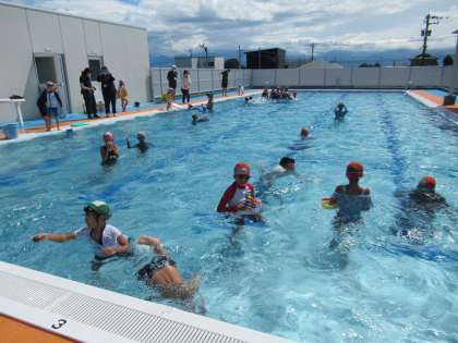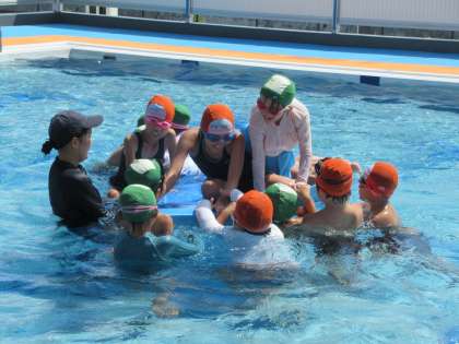 8月31日(水)1・2・3年生 みんな大好き水泳学習 公開日 2022/08/31 更新日 2022/08/31 2年生 昨日よりも気温が高く、絶好のプール日和です。子供たちは、ビート板で練習をしたり、もぐる練習をしたり、大きなボートに乗ったりと、思い思いに水泳を楽しみました。水泳学習が始まった当初は、水をこわがっていた子も、今では水に顔をつけたり、水の中に潜ったりするなど、積極的に水に親しめるようになりました。