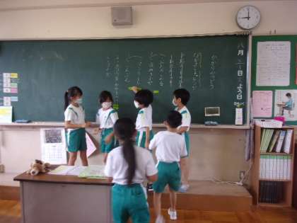 2学期に入り、新しい係活動を決めました。1学期にはなかった、アンケートを行い新聞を発行する係や、おたのしみ会を企画する係なども登場しました。今日の業間には、朝の会にクイズを出題する「なぞなぞ係」の子供たちが、図書室で借りた本を使って、早速クイズを作りました。学級目標「なかよしチャレンジ」を目指して、日々係活動にも積極的に取り組んでいます。