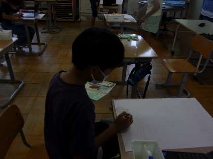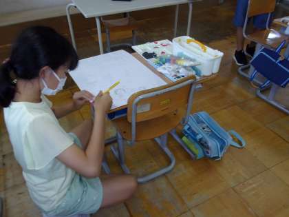 6年生は、全国統一防火標語『お出かけは マスク戸締り 火の用心』から想像を広げ、防火ポスターを描いています。一目見て、「火事を起こさないようにしないといけない。」と思うような絵を目指し、来週の完成に向けて進めています。