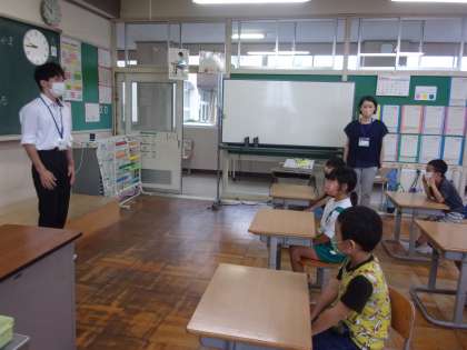 9月1日(木)1年生 新しい先生はじめまして 公開日 2022/09/01 更新日 2022/09/01 1年生 スタディメイトジュニアの先生がいらっしゃいました。 学習で分からないことを一緒に考えたり、できないことを手伝ったりしてくださいます。 今日は先生のことを知るためにいろいろな質問をしたり、体育館で一緒に遊んだりしました。