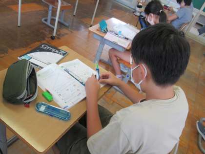 9月5日(月)6年生 算数の学習 公開日 2022/09/05 更新日 2022/09/05 6年生 図形の拡大図、縮小図をかく学習をしました。定規やコンパスを使って、正しく書きます。6年生はコンパスをしっかりと使いこなしています。