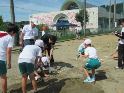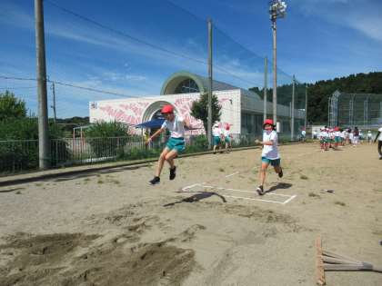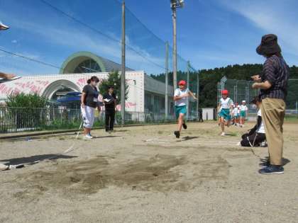 グラウンドで走り幅跳びの練習をしました。天気が良くてとても心地よいですが、気温が高いので、こまめに日陰で休んだり、水分補給をしたりして、練習に臨みました。先週学んだことは覚えているかな?最高記録を目指してがんばりましょう。