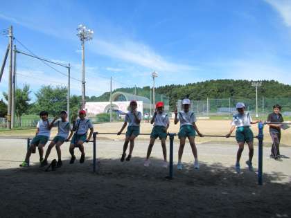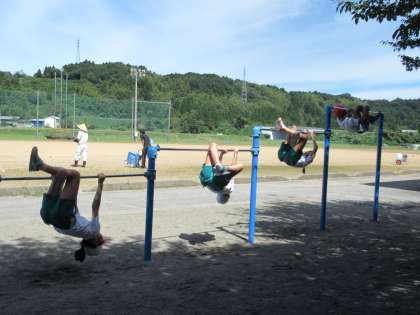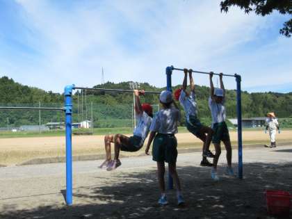 9月5日(月)6年生 晴れた日は鉄棒で 公開日 2022/09/05 更新日 2022/09/05 6年生 体育タイムと3限の間の休憩時間に鉄棒で遊びました。久しぶりに晴れてとても気持ちが良いですね。4人ならんで「ぶたのまるやき」をする、ユニークな6年生でした。