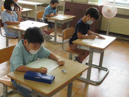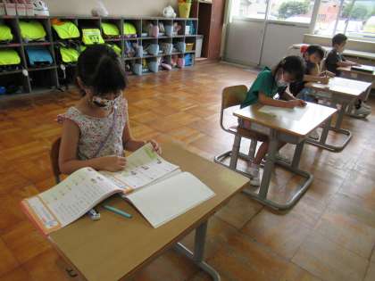 ひらがなのプリントに取り組んでいます。一人一人集中して学習しています。