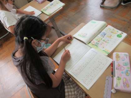 一週間の出来事を漢字で書く学習です。昨日や一昨日のことを思い出して、どんな漢字が使えるか、一生懸命考えていました。