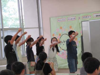 6年生は、明日チャレンジ陸上の本番です。昼のオンライン放送にて、「がんばってきます!」と全校に意気込みを発表しました。陸上競技場で、練習の成果が発揮できることを期待しています。