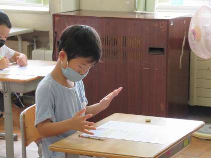 9月9日(金)1年生 算数の学習 公開日 2022/09/09 更新日 2022/09/09 1年生 今日は足し算のたしかめテストをしました。集中して真剣に取り組んでいます。指を使って数を数え、ていねいに計算しています。「絶対に100点をとるんだ!」という声も聞こえてきました。