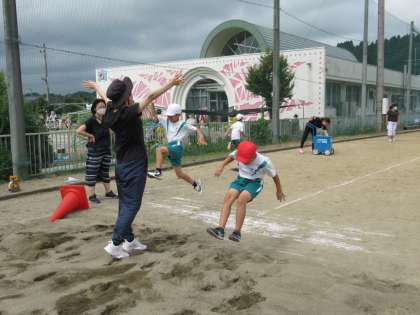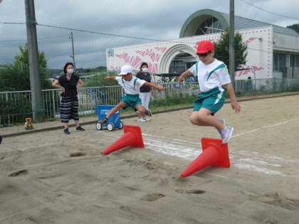 9月14日(水)1・2・3年生 体育タイム 公開日 2022/09/14 更新日 2022/09/14 朝日小学校NEWS 今日も走り幅跳びの練習をしています。三角コーンをまたいだり、先生の手にタッチするようにしたり、高く、遠くに飛べるように練習をしました。みんなだんだんと記録が伸びていっています。