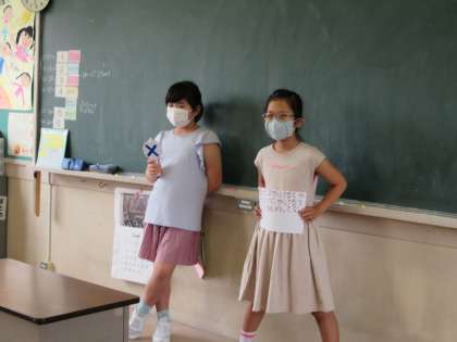 朝の会で、なぞなぞ係がなぞなぞクイズを出して、クラスのみんなで楽しんでいます。頭の体操によいですね。クイズが難しく、答えがわからないみんなの様子をみて、どこか誇らしげななぞなぞ係でした。