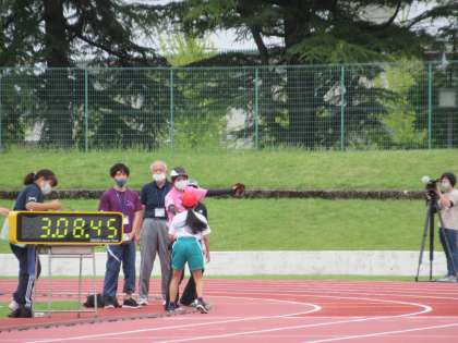 9月22日(木)陸上カーニバル チャレンジ走その2 公開日 2022/09/22 更新日 2022/09/22 学校行事 高学年は、大きなトラックを2周走ります。トラックのそばで、下学年が「がんばれーー!」「最後まであきらめるなー!」と大きな声で声援を送りました。 長い距離でしたが、全員走りきることができました!マラソン大会も楽しみです。