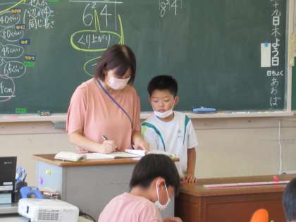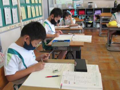 9月29日(木)3年生 算数の学習 公開日 2022/09/29 更新日 2022/09/29 3年生 かけ算の筆算を学習しました。繰り上がりに気をつけて、計算をします。集中して、教科書の練習問題に取り組んでいます。