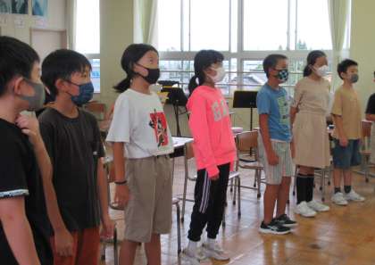 音楽科で、自分たちで歌唱をつくりあげていく活動をしています。旋律の特徴を捉え、こんなふうに歌いたいという思いをもって、歌い方を工夫しています。「旋律が重なると、曲のイメージや音の響きが変わるね」「もっときれいに聴こえるように、声をそろえようよ」「もっとはずんで、にぎやかで楽しい感じにしたい」と、思いを深め、表現がぐっと豊かになってきました。