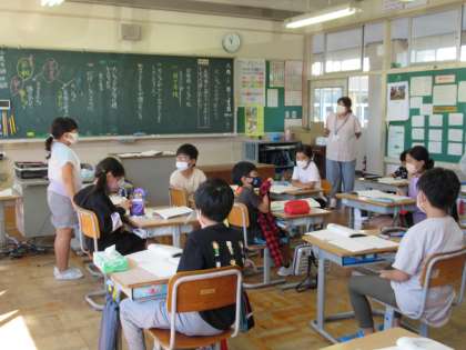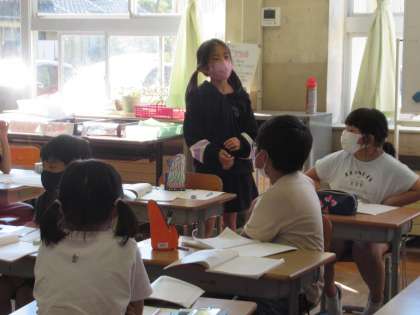「ちいちゃんのかげおくり」を読んで学習しています。今日はお話の最後の部分について話し合っていました。悲し本編とは場面が変化し、最後は少し明るい雰囲気でお話が終わっているのはどうしてでしょうか。自分の考えを発表していました。