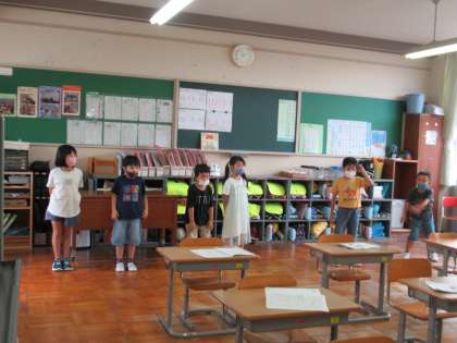 10月3日(月)1年生 はっぴょうのれんしゅう 公開日 2022/10/03 更新日 2022/10/03 1年生 学習発表会で大きな声で発表をするため、練習をしています。台本を確認した後は、体育館に行って、どれくらい大きな声で話したらいいか、練習しました。