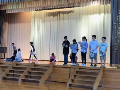 10月7日(金)5年生 学習発表会に向けて 公開日 2022/10/07 更新日 2022/10/07 5年生 5年生は縄文時代、弥生時代、、、と歴史を振り返る劇を発表をします。台本を見ながら、ステージで練習をしました。そろそろナレーションや台詞を覚えなくては…と気持ちが入ってきた5年生です。