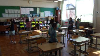 学習発表会の練習をしています。台詞や動作の確認をみんなで楽しく行いました。