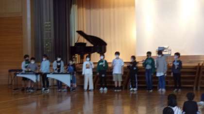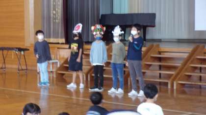 きらわく集会がありました。今日は、5年生のトーンチャイムの発表や、音楽クラブ&1・2年生の発表、スタディメイトジュニアの先生の体操の技の披露等がありました。発表する方も、それを見たり聴いたりする子供たちも、真剣で、とてもすてきな時間でした。最後にみんなで「体を鍛えようソング」を合唱しました。なかよし班や学年で考えた振り付けもユニークで、子供たちは全身で様々な動物を表現しました。