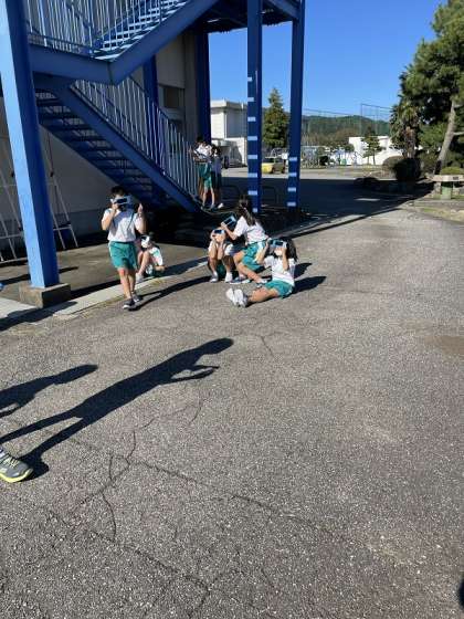10月21日(金) 3年生「太陽とかげを調べよう」 公開日 2022/10/21 更新日 2022/10/21 3年生 太陽を観察して、太陽の位置が変わるかを調べました。子供たちは初めて遮光プレートを使って空を見上げて「太陽が黄色い」「空が夜みたい」と声を上げていました。