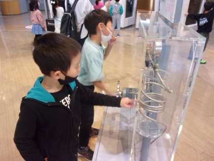 10月26日(水)1・2年生校外学習「ワンダーラボ」 公開日 2022/10/26 更新日 2022/10/26 2年生 ワンダーラボではまず、実験教室を見学しました。液体窒素の中に入れたゴムボールが固まったり、風船の中の空気が大きくなったり、小さくなったり、不思議な光景を見ることができました。実験教室を見た後は、施設の中でいろいろなゲームや装置に触れて楽しみました。