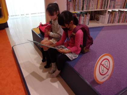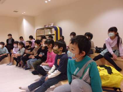 こども図書館では、今の時期にぴったりのハロウィンに関するお話の読み聞かせを聞きました。読み聞かせの後は、学校の図書室よりもたくさんある本の中から、自由に読みたい本を選んで読みました。この後、富山駅からバスに乗って、全員元気に帰校しました。