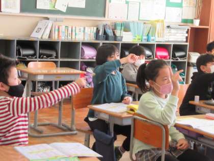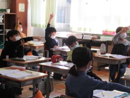 今日も新しい漢字をたくさん習いました。みんなで一斉に空書きをして、書き順を確かめます。漢字ひとつひとつをていねいに覚えていきましょう。