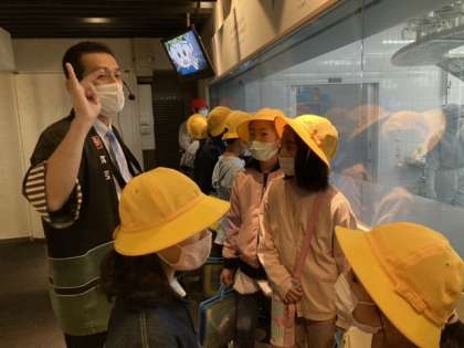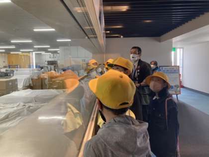 ますのすし工場の様子を見学しています。朝早くから、たくさんのますの寿司が作られていることに驚いたり、美味しいますの寿司を作るために、たくさんの工夫があることを学びました。