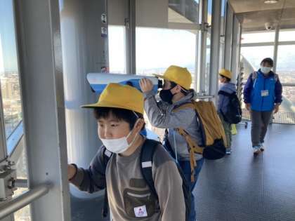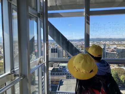 10月31日(月) 3年 校外学習 富山市展望塔 公開日 2022/10/31 更新日 2022/10/31 3年生 富山市役所の展望塔に上がりました。「海が見える!」「朝日小学校の近くのゴルフ場が見える!」など、みんな興奮しながら知っている建物等を見つけました。富山市の土地の使われ方の学習を思い出しながら、楽しく見学することができました。