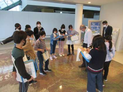 まず、環水公園水上ラインで「水のエレベーター」を体験しました。富岩運河の歴史や閘門の仕組みの工夫について詳しく教えていただきました。
