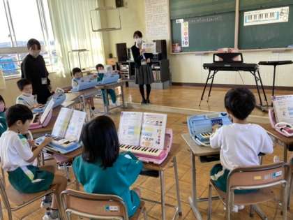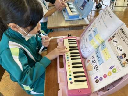 リズムや旋律を真似っこしたり、鍵盤ハーモニカを演奏したりしています。