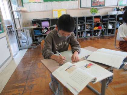 11月16日(水)4年生 国語の学習 公開日 2022/11/16 更新日 2022/11/16 4年生 今日はお話の終わりの段落を要約するという学習に取り組みました。「要約」とは、大切なことを短くまとめる、ということです。文章の中で筆者が伝えたいことはどういうことかを考えました。