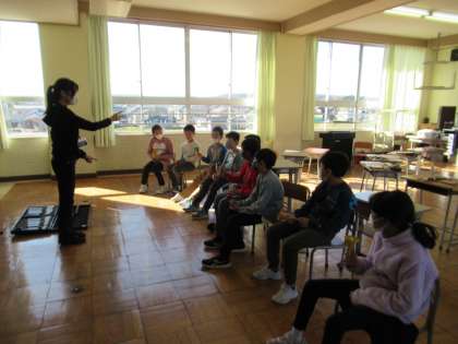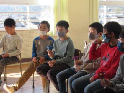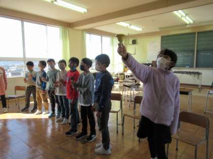 11月25日(金)4年 音楽の学習 公開日 2022/11/25 更新日 2022/11/25 4年生 トーンチャイムを使って、音の響きを楽しみました。先生の合図に合わせて、曲を演奏します。リズムよくチャイムを鳴らすのがなかなか難しいですが、ぴったり音がはまるとと心地がよいです。