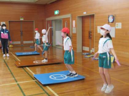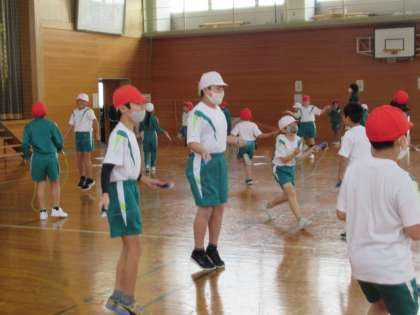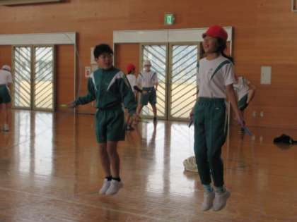 今日は二重跳びに挑戦です。腕を速く動かすことやジャンプしている時間を長くすること等に気をつけながら、一生懸命練習しました。