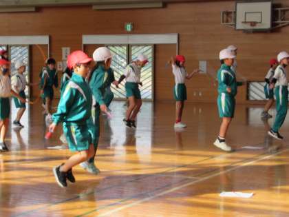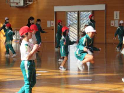 12月7日(水)体育タイム 公開日 2022/12/07 更新日 2022/12/07 朝日小学校NEWS 今日もなわとびカードにチャレンジしました。ひとつでも多く色を塗るために、いろんな跳び方にチャレンジしています。また、二重跳びの練習のために、前跳びを30秒で50回以上を目標に跳ぶことをがんばっていました。