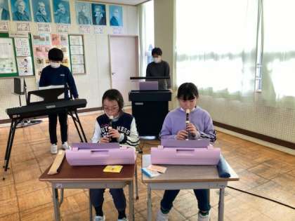 12月8日(木)6年 音楽の学習 公開日 2022/12/08 更新日 2022/12/08 6年生 「風を切って」の合奏をしました。犬ぞりの後は木琴、鉄琴の音は氷河をイメージできるなど、自分たちで話し合ったことを表現に生かすことができました。