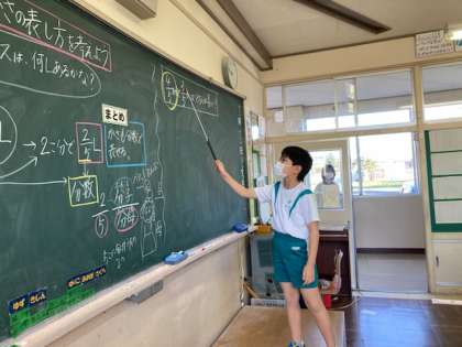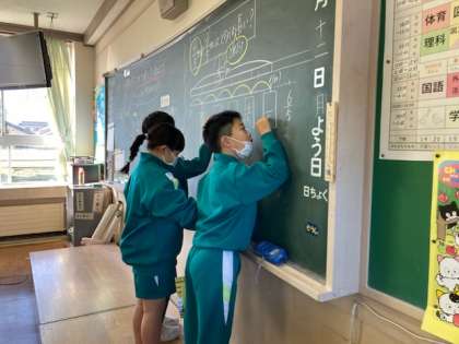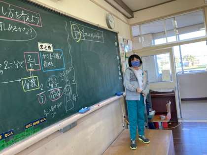 12月12日(月)3年 算数の学習 公開日 2022/12/12 更新日 2022/12/12 3年生 かさや長さを分数で表す学習をしています。いくつで分けたうちのいくつ分あるかを調べると、何分の何という分数で表せることを理解しました。