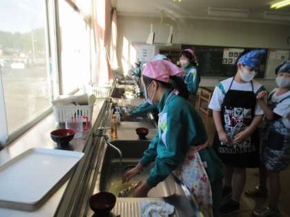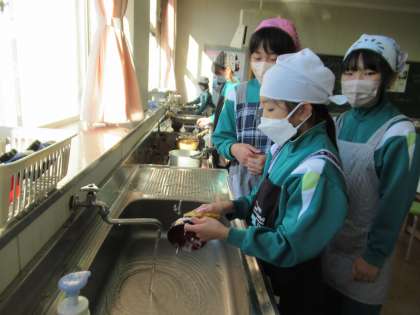 12月13日(月)5年生 家庭科の学習 公開日 2022/12/13 更新日 2022/12/13 5年生 調理実習で、ご飯を炊き、味噌汁を作りました。「あと何分火にかけるよ、あと何分蒸らすよ、お米はふっくらしてきたかな?水気はどうなったかな?」透明な鍋を使ったので、お米が炊ける様子がよくわかります。じっくりと観察しながら作りました。 空いた時間に、手際よくお皿を洗ったり片付けたりする様子から、家でも日頃からお手伝いをしていることがよく伝わってきました。