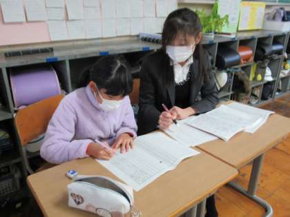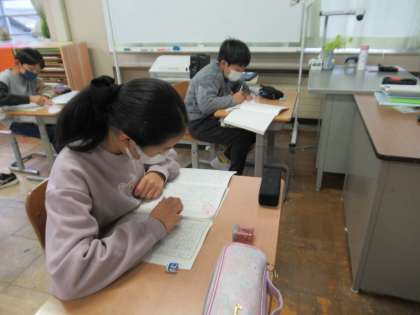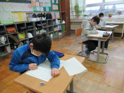 12月14日(水)4年生 2学期にがんばったこと 公開日 2022/12/14 更新日 2022/12/14 4年生 「2学期にがんばったこと」をテーマに、作文を書いています。今日は以前に書いた下書きを丁寧に清書しました。静かに集中して取り組んでいました。
