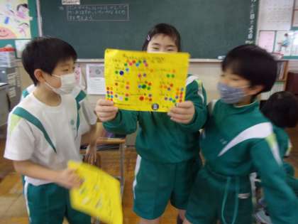 かけ算の問題や、九九をマスターする学習をしています。「もうすぐカードに合格のシールが全部貼れるよ!」と嬉しそうに話しています。