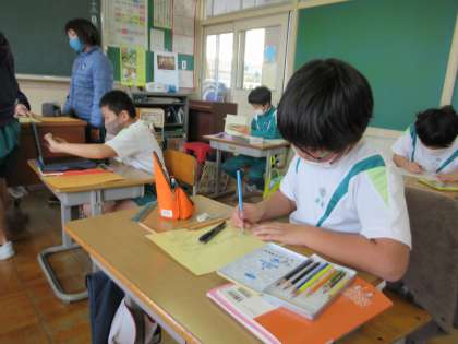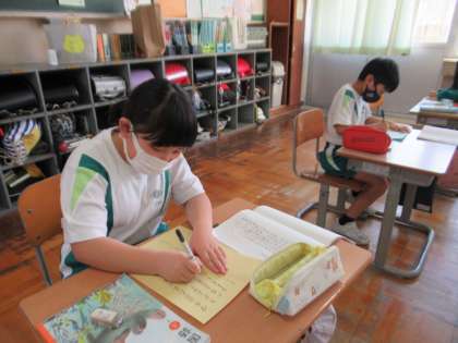 1月13日(金)3年生 国語の学習 公開日 2023/01/13 更新日 2023/01/13 3年生 国語辞典や教科書から好きな言葉、漢字を選んで、詩を作りました。挿絵も描いて、ひとつの作品として仕上げました。3年生が大好きなカナヘビについて書いている子もいました。