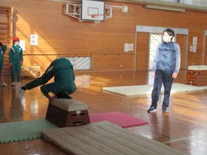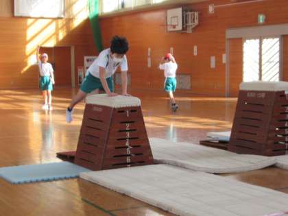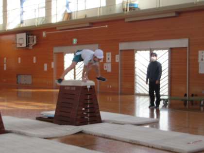 1月17日(火) 5・6年 体育の学習 公開日 2023/01/17 更新日 2023/01/17 5年生 今日は跳び箱に取り組みました。8段に挑戦したり、低い跳び箱を使って台上前転に挑戦したりしました。寒さで体がかたいまま運動するとけがをしやすくなります。柔軟運動をしっかり行い、元気に安全に取り組みましょう。