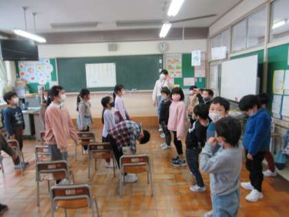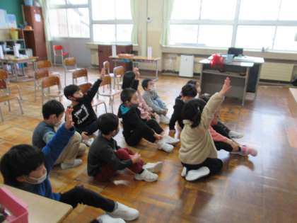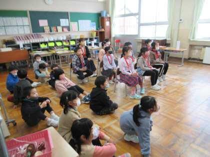 1月24日(火)1年生 朝日保育所との交流会に向けて2 公開日 2023/01/24 更新日 2023/01/24 1年生 今日は2年生に、練習の成果を見てもらい、どうしたらもっと楽しんでもらえるかと話し合いました。 明日はいよいよ交流会です。朝日保育所の子が来てくれるのを、楽しみに待っています。