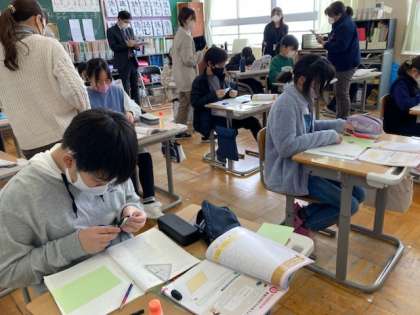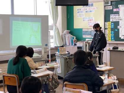 1月26日(木) 5年 算数の学習 公開日 2023/01/26 更新日 2023/01/26 5年生 今日の算数は、研究授業で、たくさんの教員が参観しました。その中で子供たちは、自分の考えを進んで発表しました。 平行四辺形の面積の求め方について考えを深めることができました。