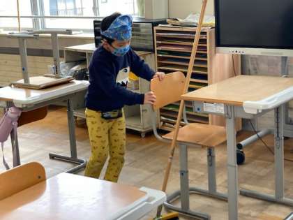 清掃時間には、いつも5分前には集まってくる朝日っ子です。一人一人が、自分の持ち場をしっかりときれいにしています。
