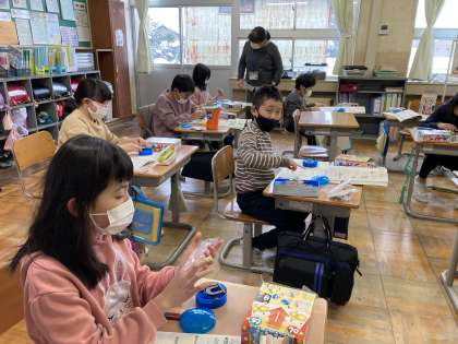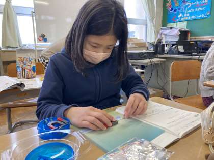 1月30日(月) 理科の学習 公開日 2023/01/30 更新日 2023/01/30 3年生 磁石と鉄が直接付いていなくても、磁石には鉄を近付ける働きがあるのかについての実験をしています。磁石とクリップの間に下敷きを挟んだり、少し離れたところから磁石を近付けたりしながら、一人一人が自分が調べたい方法で実験しています。